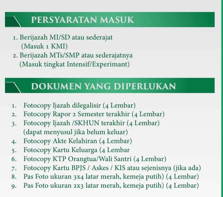 MTs/SMP atau sederajatnya (Masuk tingkat Intensif/Experimant)